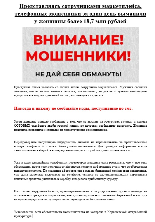 Новости Представляясь сотрудниками маркетплейса, телефонные мошенники за один день выманили у женщины 18,7 млн рублей 19 июня, 2025